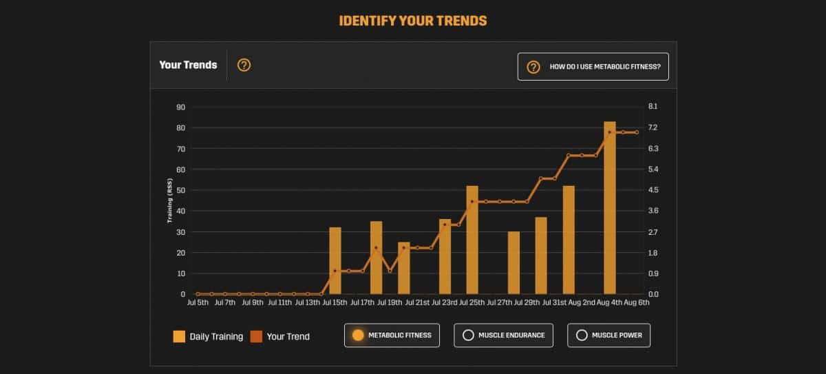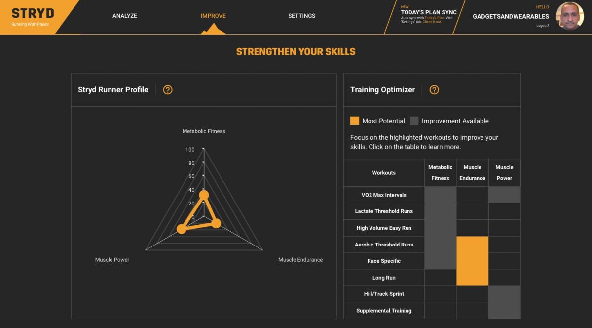 The Runner Profile gives you an overview of your strengths and weaknesses. Then there are charts illustrating your trends in metabolic fitness, muscle endurance, muscle power and more. You’re also able to compare your workouts to training plans developed by expert coaches and exercise physiologists.