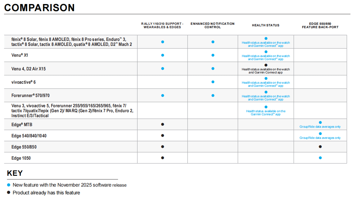 Finally, Garmin is leaning into the social aspect of cycling with expanded GroupRide data comparisons. You can now see real-time stats comparing your performance to the group average. The display shows where you stand regarding speed, heart rate, power, and watts per kilogram. This feature works best when everyone is using compatible power meters and heart rate monitors.
