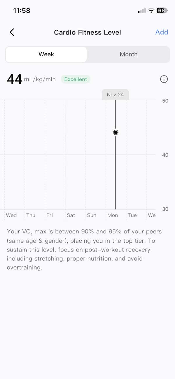With this version, RingConn also adds a VO2 max estimate. This is a well-established metric used to track how much oxygen your body can use during high-intensity effort. It’s a good way to gauge cardiovascular endurance over time.
