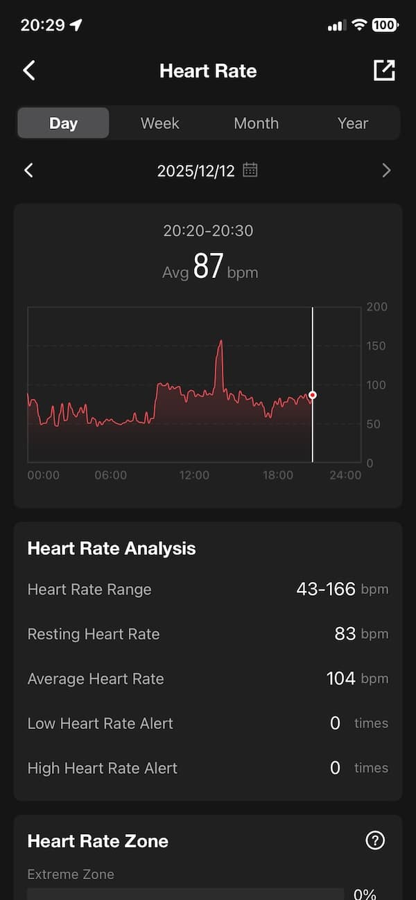 Heart rate is monitored continuously, and you can set alerts for unusually high or low readings. Accuracy is solid most of the time, though during intense spikes I noticed a bit of lag, which is pretty typical for wrist-based sensors.