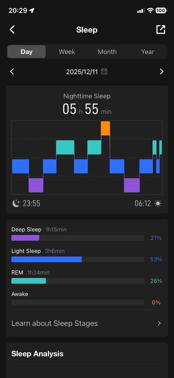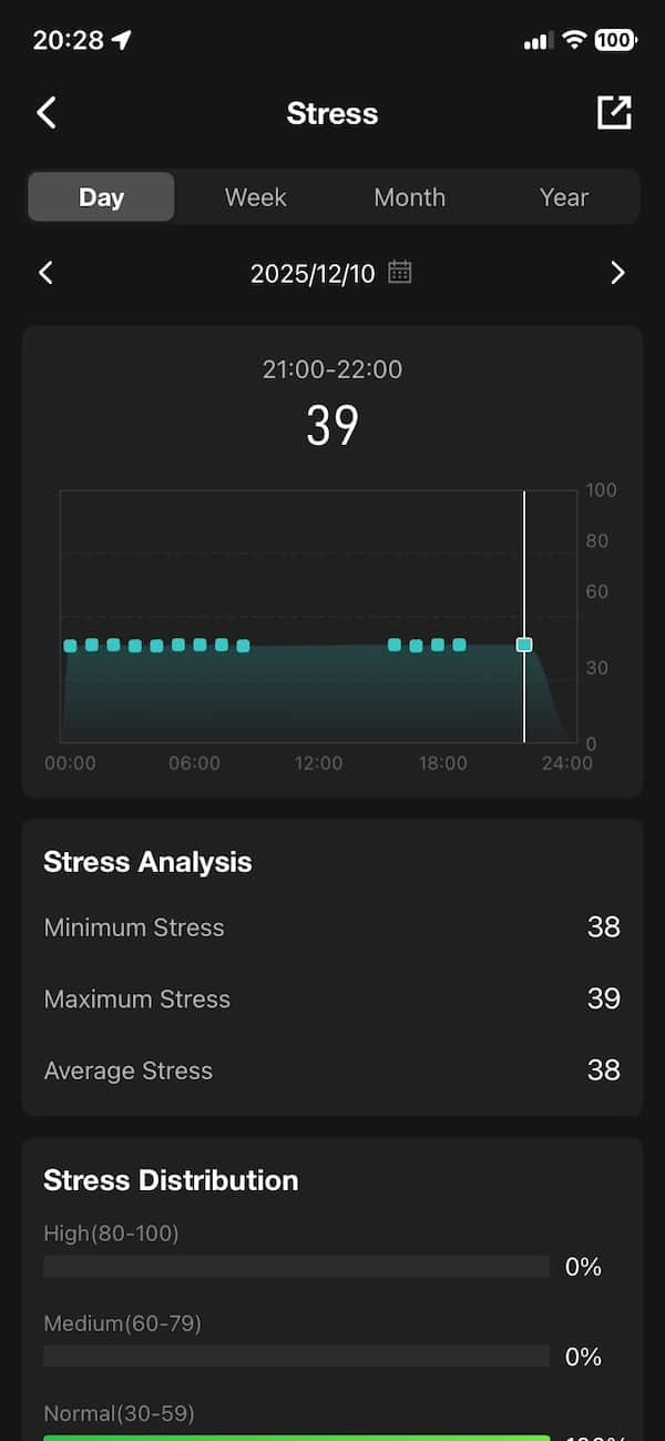 What’s missing is HRV. There’s no direct HRV metric shown anywhere, which feels like a missed opportunity. It may be used behind the scenes for stress or mood estimates, but there’s no standalone stat. You also don’t get skin temperature readings.