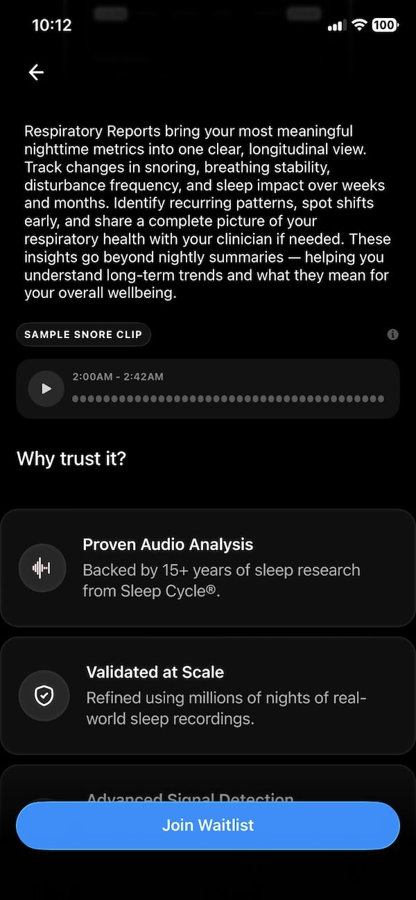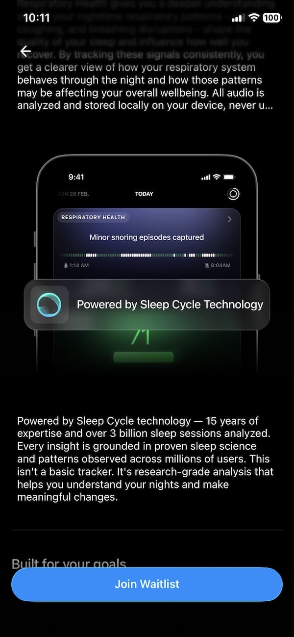 My question is more into the usability of the feature comparing with using the sleep cycle in the first place, probably subscription cost will not be much different from the subscription and both you need to use phone to record and in sleep cycle you can already import the sleep data and probably will do the same type of analysis.