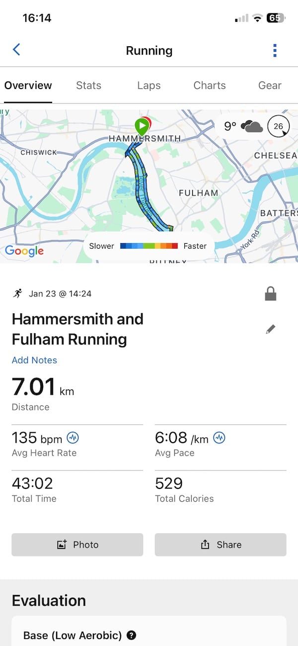 Based on how the run felt, Garmin’s interpretation made more sense. This was a steady effort with interruptions, not an all out aerobic stress test.