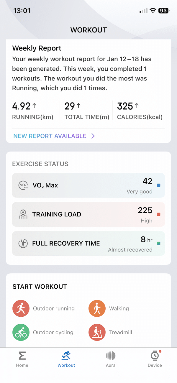 As far as Vo2Max, Amazfit estimated it at 42 ml per kg per minute and rated it as very good. That is 3 points below what my Garmin tells me. But again, the Garmin has had a longer amount of time establishing my baseline. On the very next run the Amazfit pushed me up to 43 ml per kg.