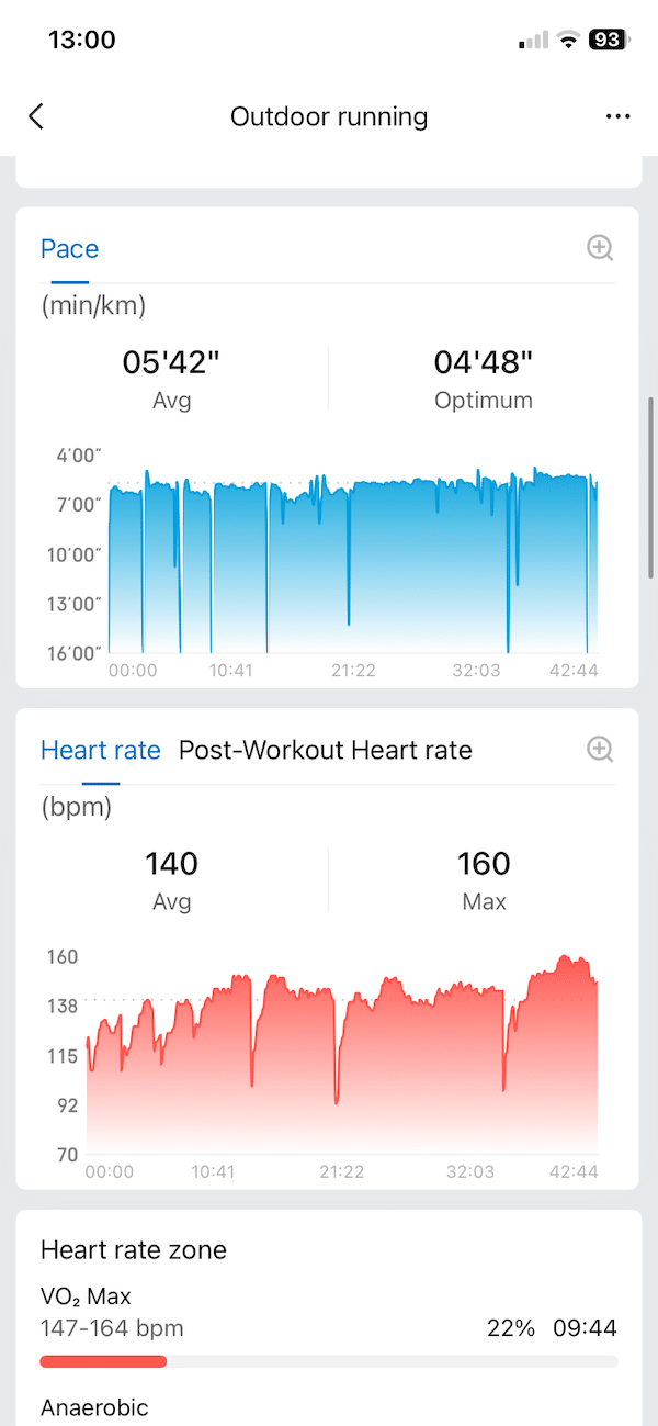 Heart rate is also where the two platforms were close. Amazfit gave me an average of 140 bpm with a peak of 160 bpm. Garmin reported 139 bpm on average and a slightly higher max of 166 bpm.