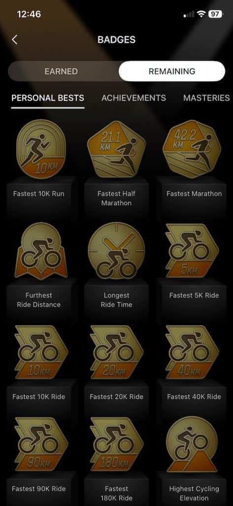 Until now, Amazfit watches have lacked the kind of visual motivation tools long offered by Apple Watch or Garmin. That changes with the new Zepp Health update, which adds a dedicated Badges section along the bottom navigation of the app. Tap on it and you’ll find a structured breakdown of progress and targets split into four sections: Personal Bests, Achievements, Challenges and Masteries.