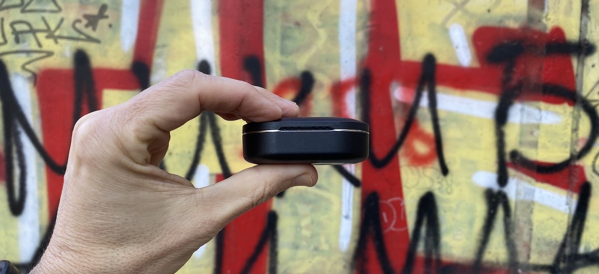 Like before, you get a small charging case with the earbuds. Drop them in when you’re not using them. It keeps them powered up, stops you from losing them, and keeps the foam tips from picking up dust or fluff from your pillow.