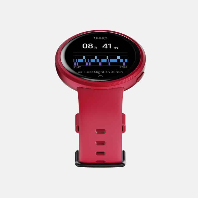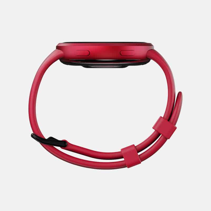 Colour options are broader on Rush. Alongside Midnight Steel and Victory Gold, there is also Spectre Red. Battery size, charging, water resistance, and the core sensor setup are otherwise the same.